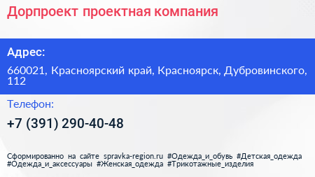 Дорпроект, проектная компания по адресу 660021, Красноярский край, Красноярск, Дубровинского, 112 в дальнейшем Организация, размещена в следующих категориях: