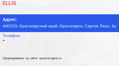ELLIS по адресу 660133, Красноярский край, Красноярск, Сергея Лазо, 6а в дальнейшем Организация, размещена в следующих категориях: