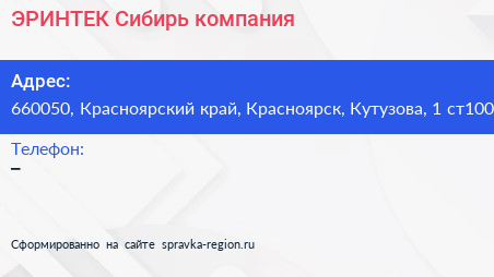 ЭРИНТЕК Сибирь, компания по адресу 660050, Красноярский край, Красноярск, Кутузова, 1 ст100 в дальнейшем Организация, размещена в следующих категориях:
