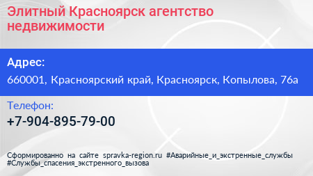 Элитный Красноярск, агентство недвижимости по адресу 660001, Красноярский край, Красноярск, Копылова, 76а в дальнейшем Организация, размещена в следующих категориях: