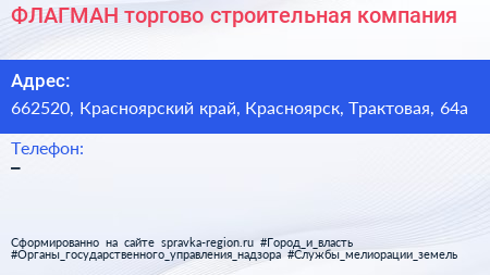 ФЛАГМАН, торгово-строительная компания по адресу 662520, Красноярский край, Красноярск, Трактовая, 64а в дальнейшем Организация, размещена в следующих категориях: