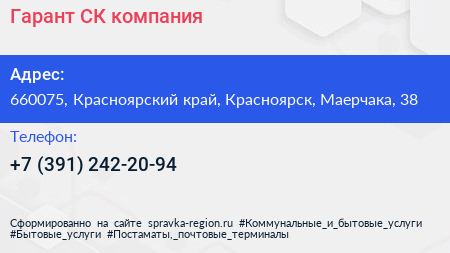 Гарант СК, компания по адресу 660075, Красноярский край, Красноярск, Маерчака, 38 в дальнейшем Организация, размещена в следующих категориях: