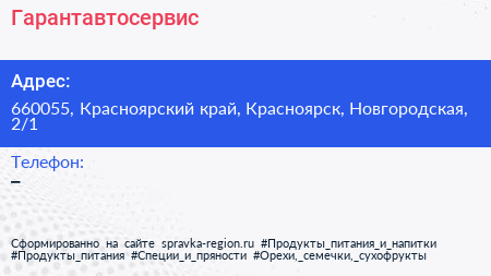 Гарантавтосервис по адресу 660055, Красноярский край, Красноярск, Новгородская, 2/1 в дальнейшем Организация, размещена в следующих категориях: