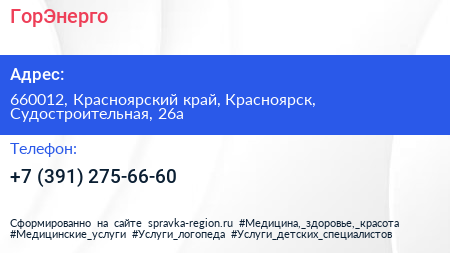 ГорЭнерго по адресу 660012, Красноярский край, Красноярск, Судостроительная, 26а в дальнейшем Организация, размещена в следующих категориях: