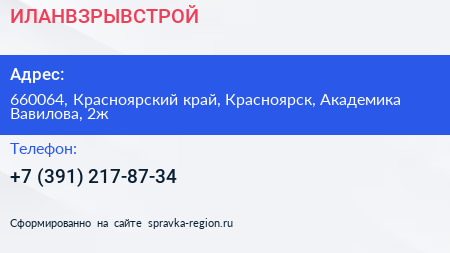 ИЛАНВЗРЫВСТРОЙ по адресу 660064, Красноярский край, Красноярск, Академика Вавилова, 2ж в дальнейшем Организация, размещена в следующих категориях: