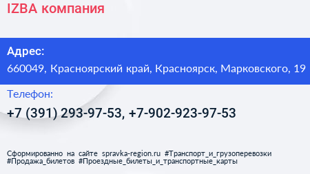 IZBA, компания по адресу 660049, Красноярский край, Красноярск, Марковского, 19 в дальнейшем Организация, размещена в следующих категориях: