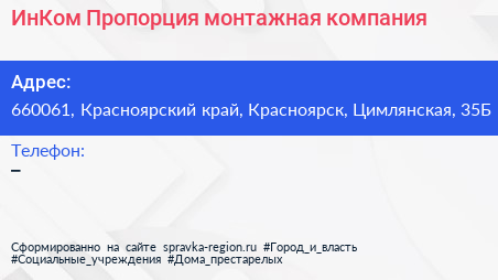 ИнКом-Пропорция, монтажная компания по адресу 660061, Красноярский край, Красноярск, Цимлянская, 35Б в дальнейшем Организация, размещена в следующих категориях: