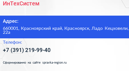 ИнТехСистем по адресу 660001, Красноярский край, Красноярск, Ладо Кецховели, 22а в дальнейшем Организация, размещена в следующих категориях: