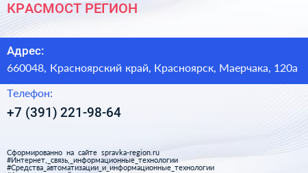 КРАСМОСТ РЕГИОН по адресу 660048, Красноярский край, Красноярск, Маерчака, 120а в дальнейшем Организация, размещена в следующих категориях: