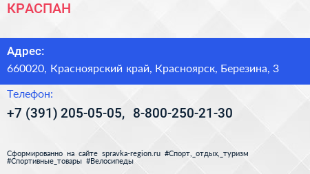 КРАСПАН по адресу 660020, Красноярский край, Красноярск, Березина, 3 в дальнейшем Организация, размещена в следующих категориях: