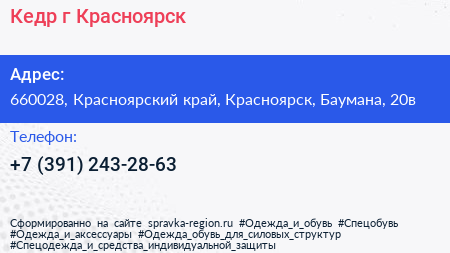 Кедр, г. Красноярск по адресу 660028, Красноярский край, Красноярск, Баумана, 20в в дальнейшем Организация, размещена в следующих категориях: