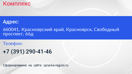 Комплекс по адресу 660041, Красноярский край, Красноярск, Свободный проспект, 66д в дальнейшем Организация, размещена в следующих категориях:
