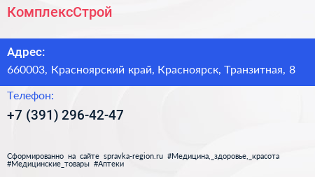 КомплексСтрой по адресу 660003, Красноярский край, Красноярск, Транзитная, 8 в дальнейшем Организация, размещена в следующих категориях: