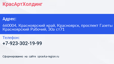 КрасАртХолдинг по адресу 660004, Красноярский край, Красноярск, проспект Газеты Красноярский Рабочий, 30а ст71 в дальнейшем Организация, размещена в следующих категориях: