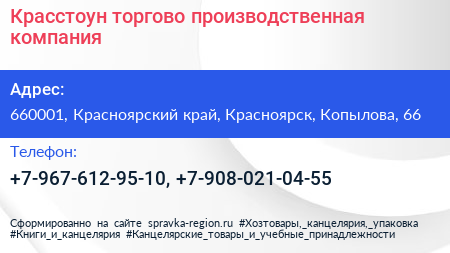 Красстоун, торгово-производственная компания по адресу 660001, Красноярский край, Красноярск, Копылова, 66 в дальнейшем Организация, размещена в следующих категориях: