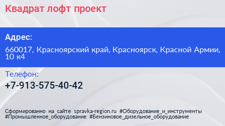 Квадрат, лофт-проект по адресу 660017, Красноярский край, Красноярск, Красной Армии, 10 к4 в дальнейшем Организация, размещена в следующих категориях:
