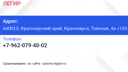 ЛЕГИР по адресу 660013, Красноярский край, Красноярск, Томская, 4а ст10 в дальнейшем Организация, размещена в следующих категориях: