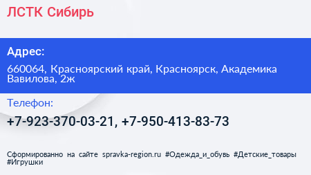 ЛСТК-Сибирь по адресу 660064, Красноярский край, Красноярск, Академика Вавилова, 2ж в дальнейшем Организация, размещена в следующих категориях: