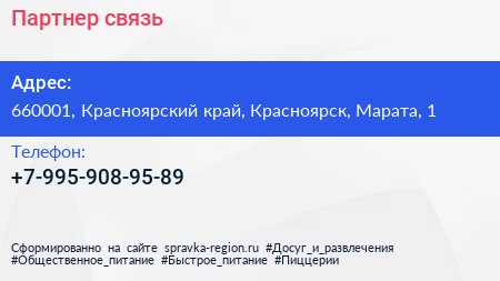 Партнер связь по адресу 660001, Красноярский край, Красноярск, Марата, 1 в дальнейшем Организация, размещена в следующих категориях: