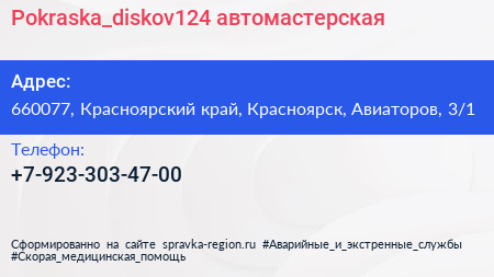 Pokraska_diskov124, автомастерская по адресу 660077, Красноярский край, Красноярск, Авиаторов, 3/1 в дальнейшем Организация, размещена в следующих категориях: