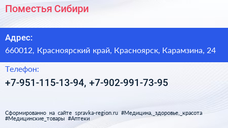 Поместья Сибири по адресу 660012, Красноярский край, Красноярск, Карамзина, 24 в дальнейшем Организация, размещена в следующих категориях: