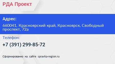 РДА Проект по адресу 660041, Красноярский край, Красноярск, Свободный проспект, 72а в дальнейшем Организация, размещена в следующих категориях: