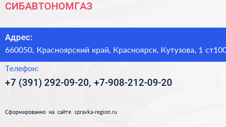 СИБАВТОНОМГАЗ по адресу 660050, Красноярский край, Красноярск, Кутузова, 1 ст100 в дальнейшем Организация, размещена в следующих категориях: