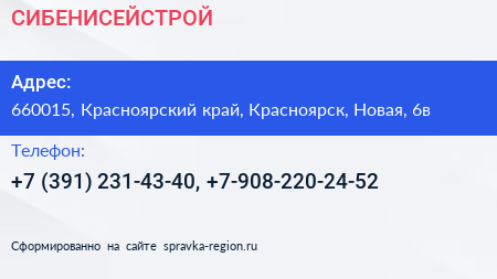 СИБЕНИСЕЙСТРОЙ по адресу 660015, Красноярский край, Красноярск, Новая, 6в в дальнейшем Организация, размещена в следующих категориях: