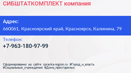 СИБШТАТКОМПЛЕКТ, компания по адресу 660061, Красноярский край, Красноярск, Калинина, 79 в дальнейшем Организация, размещена в следующих категориях:
