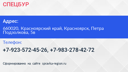 СПЕЦБУР по адресу 660020, Красноярский край, Красноярск, Петра Подзолкова, 5в в дальнейшем Организация, размещена в следующих категориях: