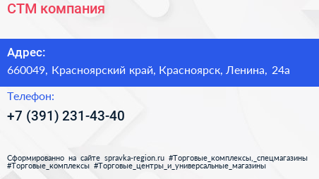 СТМ, компания по адресу 660049, Красноярский край, Красноярск, Ленина, 24а в дальнейшем Организация, размещена в следующих категориях: