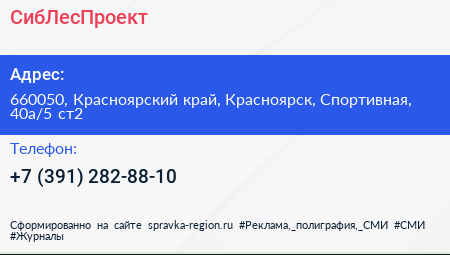 СибЛесПроект по адресу 660050, Красноярский край, Красноярск, Спортивная, 40а/5 ст2 в дальнейшем Организация, размещена в следующих категориях: