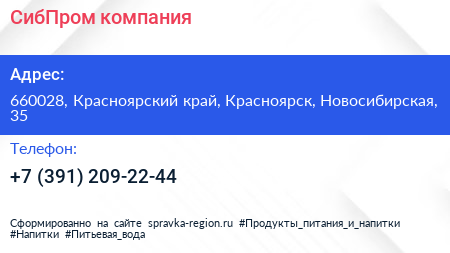 СибПром, компания по адресу 660028, Красноярский край, Красноярск, Новосибирская, 35 в дальнейшем Организация, размещена в следующих категориях: