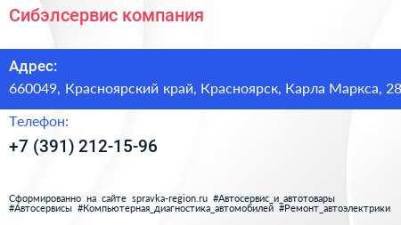 Сибэлсервис, компания по адресу 660049, Красноярский край, Красноярск, Карла Маркса, 28 в дальнейшем Организация, размещена в следующих категориях: