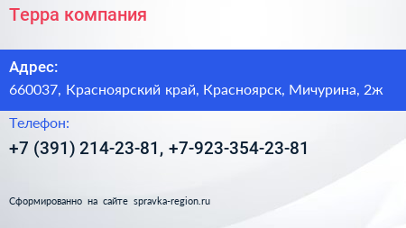 Терра, компания по адресу 660037, Красноярский край, Красноярск, Мичурина, 2ж в дальнейшем Организация, размещена в следующих категориях: