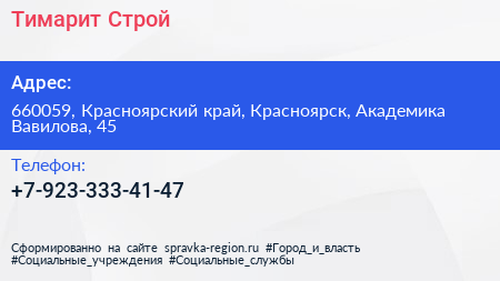 Тимарит-Строй по адресу 660059, Красноярский край, Красноярск, Академика Вавилова, 45 в дальнейшем Организация, размещена в следующих категориях: