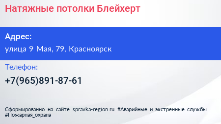 Натяжные потолки Блейхерт по адресу улица 9 Мая, 79, Красноярск в дальнейшем Организация, размещена в следующих категориях: