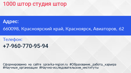 1000 штор, студия штор по адресу 660098, Красноярский край, Красноярск, Авиаторов, 62 в дальнейшем Организация, размещена в следующих категориях: