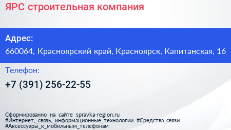 ЯРС, строительная компания по адресу 660064, Красноярский край, Красноярск, Капитанская, 16 в дальнейшем Организация, размещена в следующих категориях: