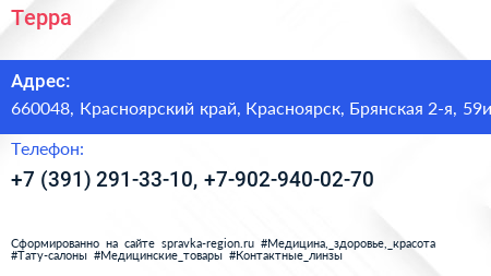 Терра по адресу 660048, Красноярский край, Красноярск, Брянская 2-я, 59и в дальнейшем Организация, размещена в следующих категориях: