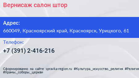 Вернисаж, салон штор по адресу 660049, Красноярский край, Красноярск, Урицкого, 61 в дальнейшем Организация, размещена в следующих категориях: