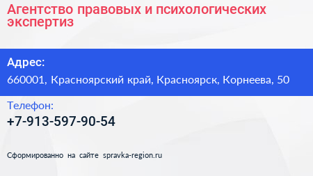 Агентство правовых и психологических экспертиз по адресу 660001, Красноярский край, Красноярск, Корнеева, 50 в дальнейшем Организация, размещена в следующих категориях: