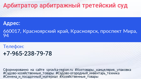 Арбитратор, арбитражный третейский суд по адресу 660017, Красноярский край, Красноярск, проспект Мира, 94 в дальнейшем Организация, размещена в следующих категориях: