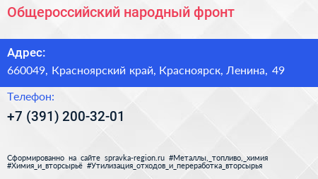 Общероссийский народный фронт по адресу 660049, Красноярский край, Красноярск, Ленина, 49 в дальнейшем Организация, размещена в следующих категориях: