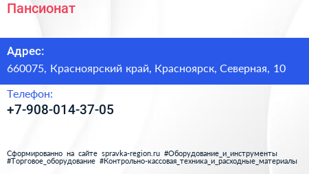 Пансионат по адресу 660075, Красноярский край, Красноярск, Северная, 10 в дальнейшем Организация, размещена в следующих категориях: