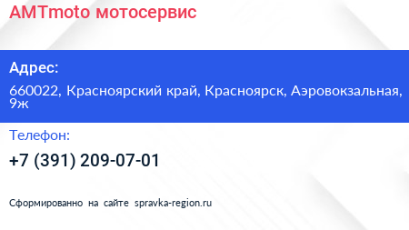 АМТmoto, мотосервис по адресу 660022, Красноярский край, Красноярск, Аэровокзальная, 9ж в дальнейшем Организация, размещена в следующих категориях: