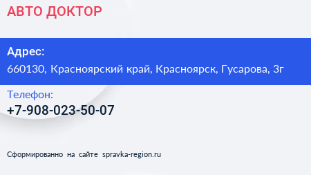АВТО-ДОКТОР по адресу 660130, Красноярский край, Красноярск, Гусарова, 3г в дальнейшем Организация, размещена в следующих категориях: