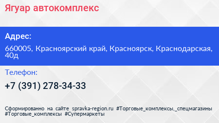 Ягуар, автокомплекс по адресу 660005, Красноярский край, Красноярск, Краснодарская, 40д в дальнейшем Организация, размещена в следующих категориях: