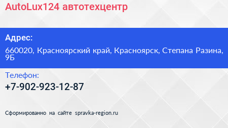 AutoLux124, автотехцентр по адресу 660020, Красноярский край, Красноярск, Степана Разина, 9Б в дальнейшем Организация, размещена в следующих категориях: