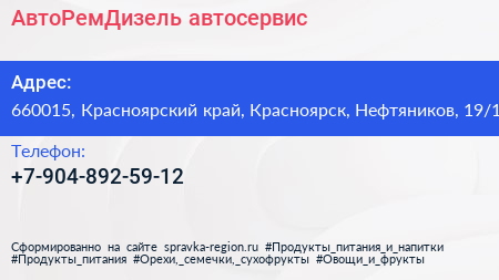 АвтоРемДизель, автосервис по адресу 660015, Красноярский край, Красноярск, Нефтяников, 19/1 в дальнейшем Организация, размещена в следующих категориях: